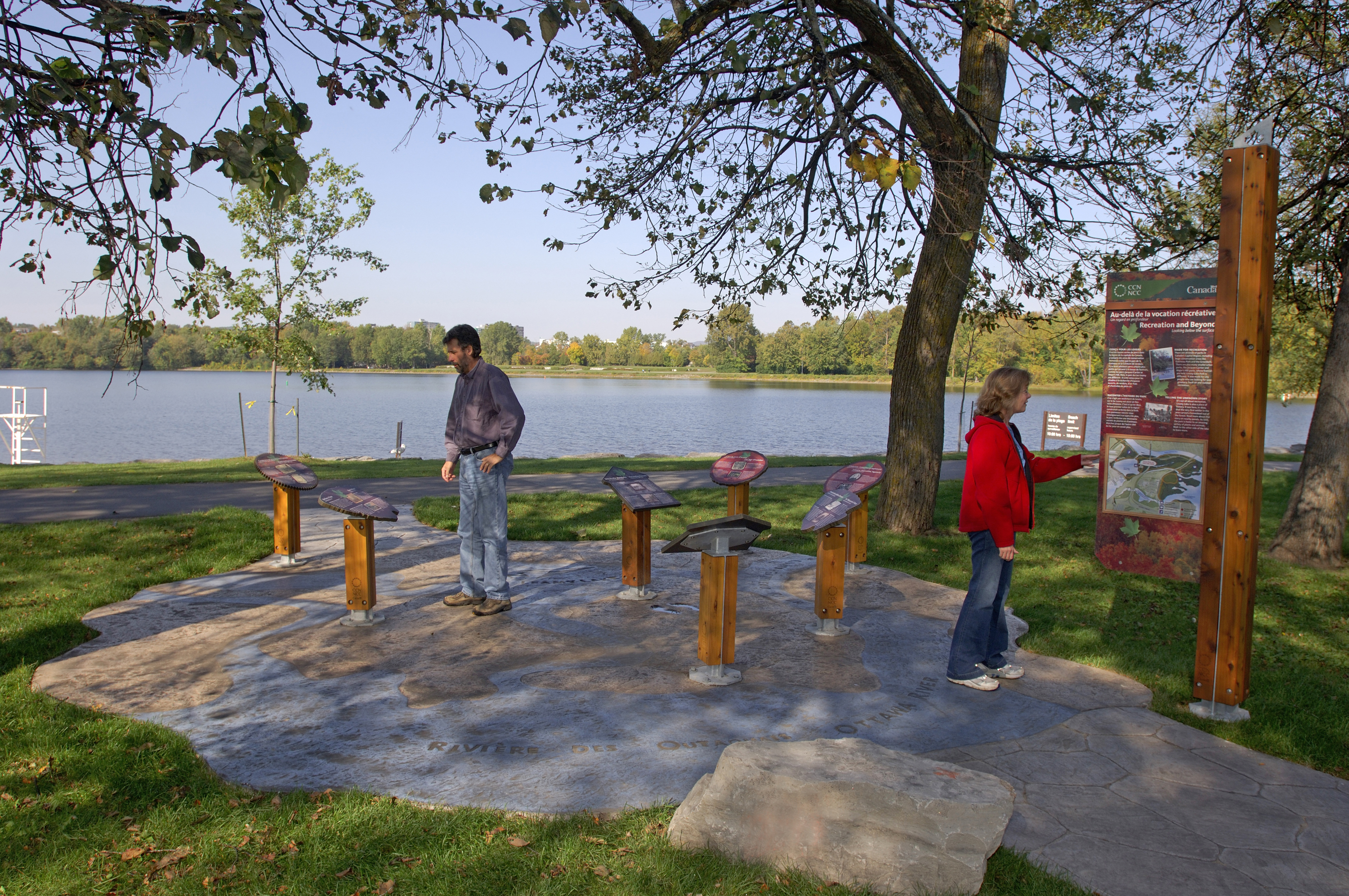 Two interpretation and orientation sites within the Leamy Lake Park were developed to give the park users the opportunity to become familiar with and gain greater appreciation of this location administered by the NCC. The first interpretation area was located close to the newly rehabilitated beach pavilion and the second was installed near the City of Gatineau Visitor Centre. The project received an Award of Excellence from Interpretation Canada.